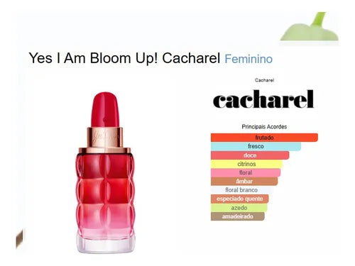 Yes I Am Bloom Up! de Cacharel es una fragancia de la familia olfativa Floral Frutal para Mujeres. Esta fragrancia es nueva. Yes I Am Bloom Up! se lanzó en 2023. Yes I Am Bloom Up! fue creada por Honorine Blanc y Alexis Grugeon.