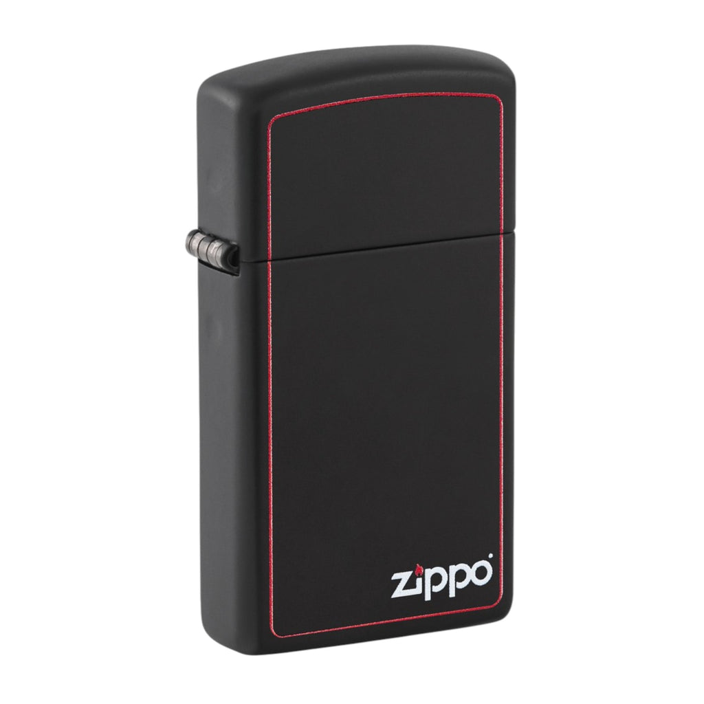 Zippo 1618ZB Slim Black Matte Red Border & Logo – formato Slim, negro mate con borde rojo